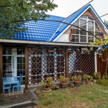 Предлагаем Вам дом-студию, комфортабельный отдых в тишине, морской воздух, в экологически благоприятном, безопасном месте, незабываемой атмосфере. Двухэтажный коттедж с оригинальным оформлением, необычным дизайном и старинной мебелью в английском стиле, на территории с виллой и коттеджем. До моря - 900 метров.