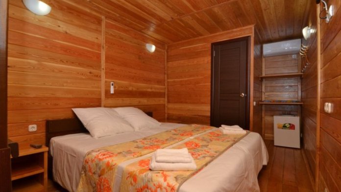 Все номера соответствую названию эко - мебель выполнена также из массива дерева и обладает приятным запахом и гипоаллергенными свойствами. Уборка номера производится раз в 3 дня. Удобства в номере: сплит-система, телевизор, холодильник, ТВ с плоским экраном, WI-FI по всей территории отеля, фен, балкон, полноценный сан узел в каждом номере (туалет и душ), горячая и холодная вода постоянно.