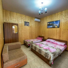 К услугам гостей номера разной вместимости с удобствами и эконом-класса (кондиционер в номере, санузел на этаже). Горячая и холодная вода круглосуточно (артезианская). Две кухни, балкон, большой двор, автостоянка (бесплатно), беседки, видеонаблюдение. В номерах с удобствами есть кондиционер, холодильник ,ТВ, санузел.