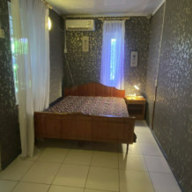 Двухкомнатный 4-местный флигель - пристройка к дому: две смежные комнаты, у каждой отдельный выход в кухню, кухня-столовая со всем необходимым: холодильник, микроволновка, газовая плита, посуда. В комнатах двуспальные кровати, шкафы для одежды, есть кондиционер. В кухне спутниковое ТВ: более 300 каналов.