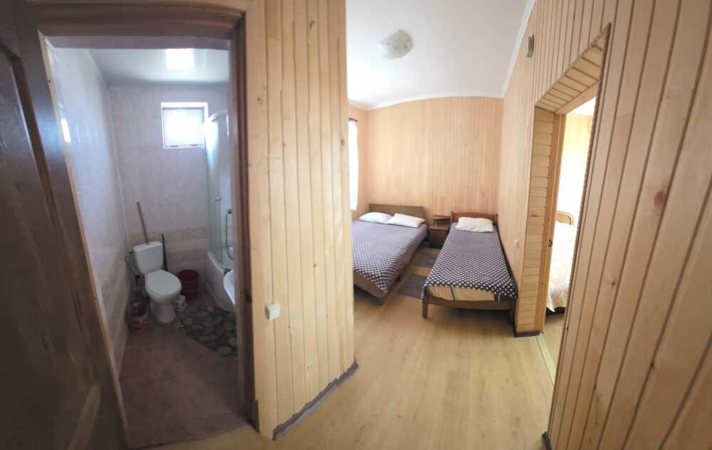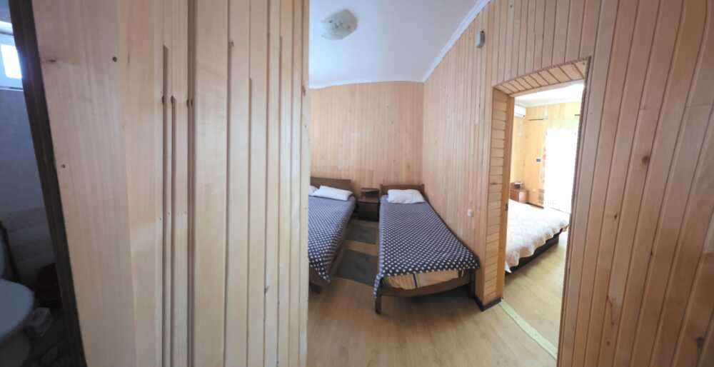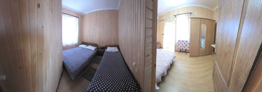 Двухкомнатный пятиместный с прекрасным видом на сад.