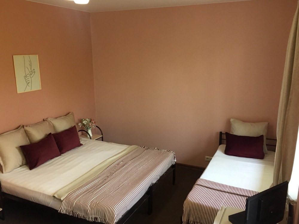 Уютная комната для 3-х человек, оснащенная всем необходимы. Отдельный выход на улицу из комнат 1го этажа и на балкон из комнат 2-го этажа