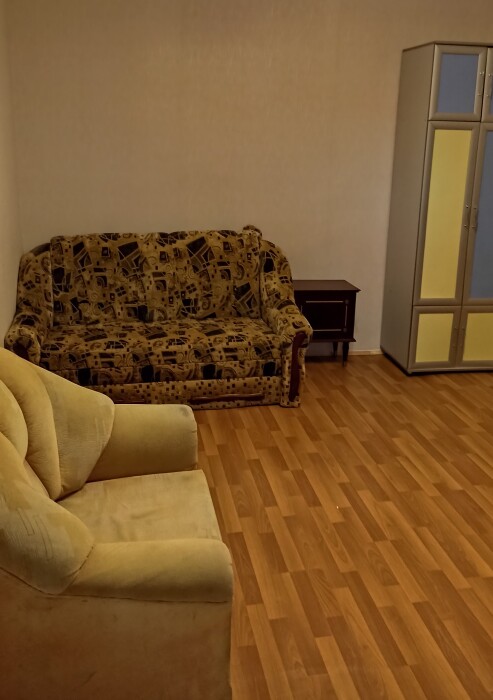В квартире есть всё необходимое, стиральная машина находится в отдельном помещении.