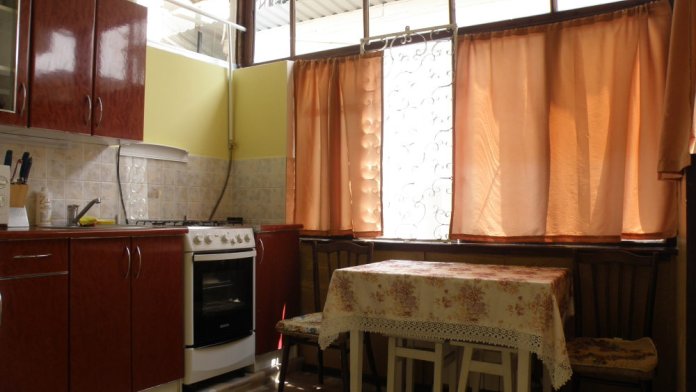 Находится в старом районе города, рядом центр города, набережная, кафе, столовые, магазины и т. д.