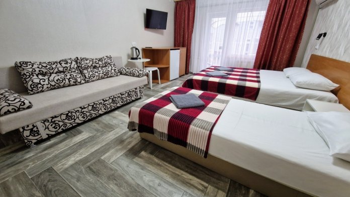 Номера со всеми удобствами, расположены на 1, 2 и 3 этажах. У номеров 1 этажа – террасы. В номерах второго и третьего этажей - балконы, которые находятся в тени виноградных лоз. Окна всех номеров выходят во дворик, а с балконов открывается вид на горный хребет Тепе-Оба.