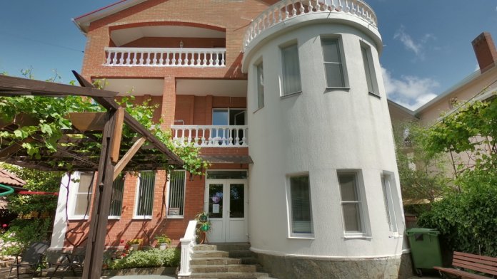 Территория гостевого дома облагорожена: газоны, высажены тропические растения и деревья. Для отдыхающих обустроена площадка для отдыха, беседка, мангальная зона, летняя кухня.