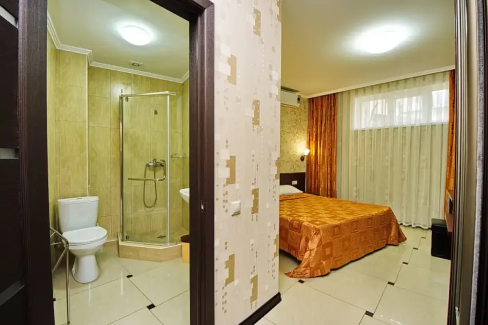 Обратите внимание: номера не оборудованы поручнями в ванной комнате и свободным въездом в душевую кабину. Поэтому рекомендуется размещение с сопровождающим.
