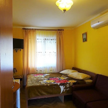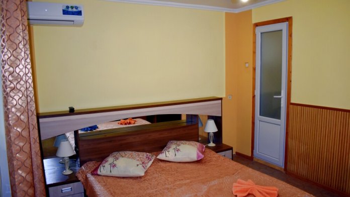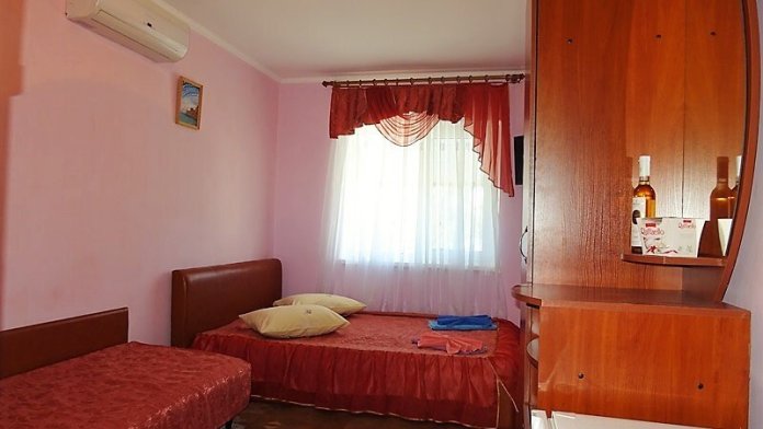 Номер расположен на втором этаже, в номере мебель, холодильник, кондиционер, телевизор, санузел и душ, WI-Fi. Горячая вода по желанию, холодная - постоянно. Перед номером открытая терраса, увитая виноградом, столик и стулья.