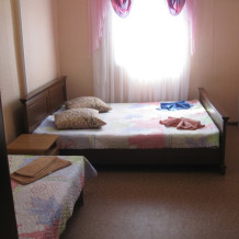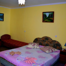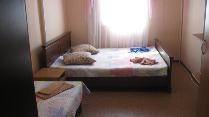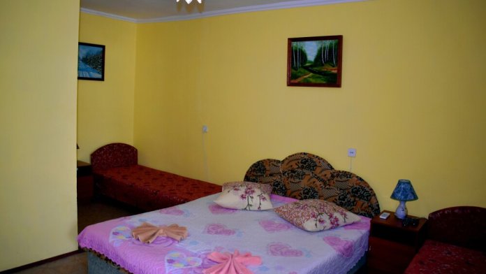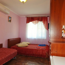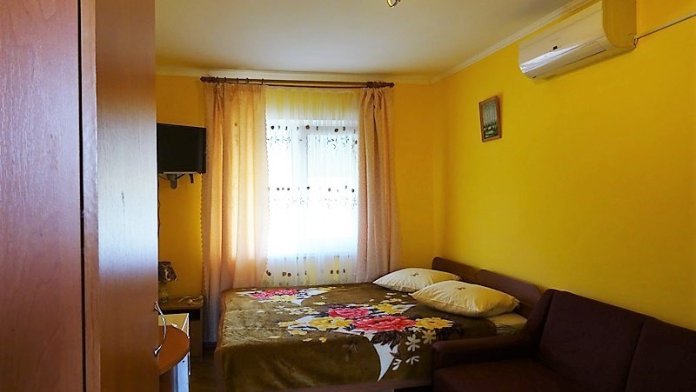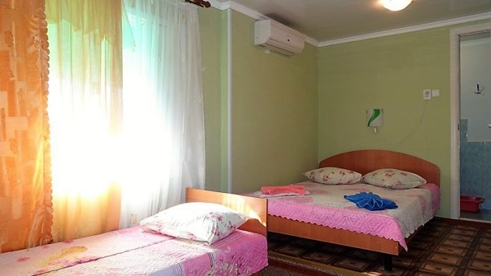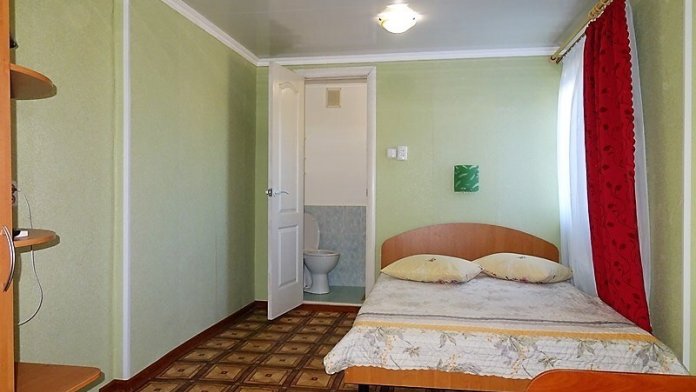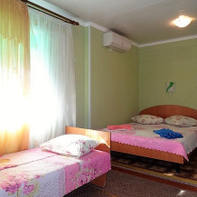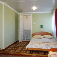 Четырехместный номер расположен в одноэтажном здании. В номере мебель, холодильник, кондиционер, телевизор, санузел и душ, Wi-Fi. Горячая и холодная вода - постоянно. Перед номером индивидуальная зона отдыха, где размещены стол и стулья для вечернего чаепития.