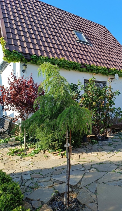 На территории 3 коттеджа вместимостью от 2 до 6 человек. В каждом коттедже есть все необходимое для комфортного проживания: кухня, собственная ванная комната, стиральная машина, шкаф, кондиционер, телевизор.