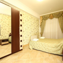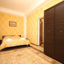 Уютные однокомнатные номера с балконом и без балкона, выполнены в индивидуальном дизайне с одной двуспальной кроватью либо двумя раздельными односпальными. В номере есть все необходимое для комфортного отдыха и работы.