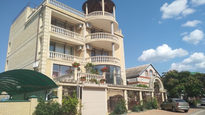 Построенный по индивидуальному проекту трехэтажный гостевой дом «Сахалин» расположен в новый жилом микрорайоне Лазурный курортной зоны Черноморского побережья. Он считается самым тихим и уютным для семейного отдыха. Здесь не слышны шум аттракционов и громкая музыка.