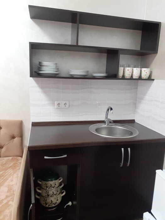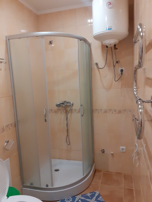 Самые приятные впечатления от двух недель проживания. Два номера отдельных, в одном два взрослых, в другом - два взрослых и ребенок. Обстановка - все как на фото (вместительный шкаф с вешалками, огромный диван-кровать и раскладной диванчик, кухонный гарнитур со всем необходимым для самостоятельного приготовления пищи, плитка электрическая, комод вместительный, телевизор, раскладной стол, табуретки, холодильник, утюг и гладильная доска, кондиционер + "ветерок", в с/у душевая кабина, бойлер, электрическая батарея, сушилка (можно было поставить на улице на крыльце), рулонная штора на двери, тюль и обычная штора). Елена и Роман - замечательные хозяева, на все вопросы-просьбы всегда оперативный ответ и помощь, с трансфером из/в аэропорт помогли. Единственный минус - слышимость. Если будут громкоговорящие или любители пошуметь за стеной отдыхать, будет не сладко. И ремонтные работы кругом, но это везде так в Крыму, все что-то строиться или перестраивается, ремонтируется. Ребенок спал пару раз днем и под шум болгарки))) Пыль оседала на крылечке, не трудно раз в день было и в номере помыть и у двери на крыльце. До моря - рукой подать, 2 минуты. В номере слышен плеск волн. Выдавали полотенце кухонное, для рук и по банному на каждого, смена постельного белья и полотенец через неделю; туалетная бумага, средство для мытья посуды, губка, тряпка, пакеты под мусор (выносили сами в баки), швабра, метла, совок, ведро, тазик - все было в наличии. Есть парковка для авто. Интернет беспроводной на территории. Солнце не припекает, т.к. рядом дома повыше стоят. Рядом ресторан "Сытый лось" (шума от него не было, не знаю, как в высокий сезон) , на въезде с Качинского шоссе на территорию - небольшое кафе-столовая " Чайхона" (есть комплексное питание). Ни там, ни там не были, про качество не могу сказать. Бассейн открытый - в гору подняться, прямо у моря, идти 5 минут (не работал, когда были, но нам и не нужно было, мы две недели купались в море). Пляж - песочек, волнами прибивает гальку, длинный, широкий, чистый, оборудованный всем необходимым. В сезон высокий, наверное, много людей, до города рядом (автобусные остановки в обе стороны - 10 минут идти, проезд дешевый, ехать полчаса, можно по соседним посёлкам поездить (мы в Каче гуляли, природа другая немного, хоть и рядом, памятники героям войны, архитектура, но точно бы там не остановились, если пляжный отдых - там это узкая полоска, домишки прям в берег встроены, какие-то проходы-казематы, площадка детская интересная, церковь; в Учкуевке были - суперпарк и природный, и площадки-аттракционы, и взрослым, и детям бесплатно, уютно, но пляж там тоже не воодушевил - застроено все кафе, барами, были, когда волны сильные - весь берег в водорослях и запах жуткий; на автобусе пару раз в Севастополь ездили, брали там экскурсии, что-то сами смотрели, в Балаклавскую бухту +там как раз с дельфинами рядом оказались, в Бахчисарай сами тоже ездили). Экскурсии, на наш взгляд, дороговаты. Если на машине - отлично можно самим поездить по Крыму. Или договориться с теми, кто на трансферах зарабатывает. Размещённые В инете экскурсии от частников - тоже заоблачно стоят. В Орловке отличное кафе в пляжной зоне с блинами, сырниками, оладушками, запеканками, вафлями и рядом ресторан "Чайхана" с живой музыкой по вечерам (очень душевно ) ) и павлинами-голубями-курами. Есть чем покормить 