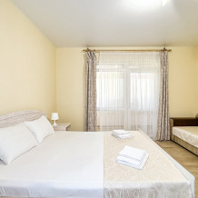 В каждом номере кондиционер, телевизор с плоским экраном, гардеробная, холодильник, собственная ванная комната с душем, горячая и холодная вода круглосуточно, имеются номера с балконом и видом на горы и море. За дополнительную плату предоставляется завтрак.