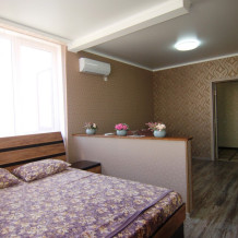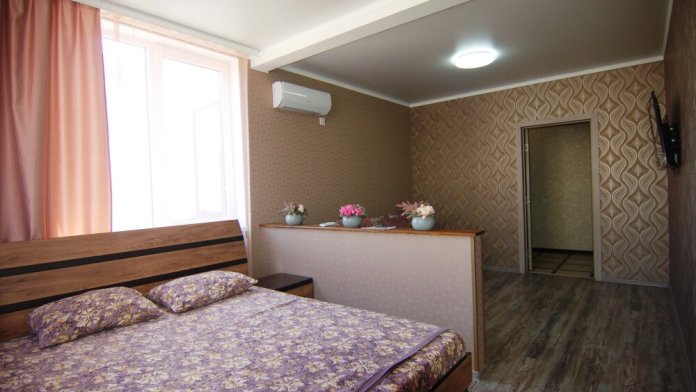В очень уютной квартире имеется: 2 сплит-системы, стиральная машина, холодильник, микроволновка, интернет, Wi-Fi, кабельное ТВ, утюг, фен, гладильная доска. Посуда, белье, полотенца для комфортного проживания. До чистого открытого моря и пляжа санатория «Факел» - 7 минут пешком, до набережной - 15 минут.