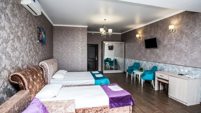 Гостям предлагается проживание в 2,3 и 4-местных номерах со всеми удобствами и собственными балконами с местами для отдыха. Есть двухкомнатные номера. Большинство номеров с видом на море.