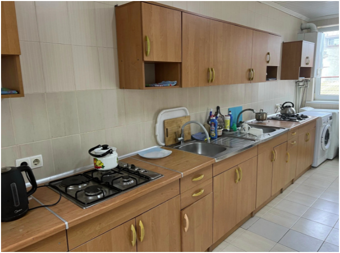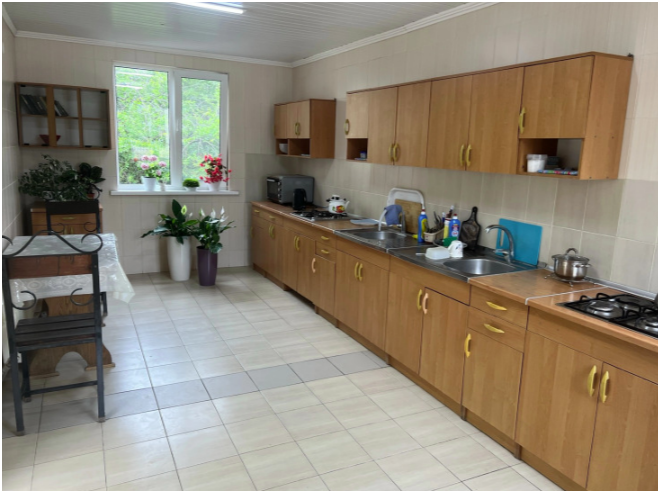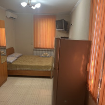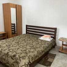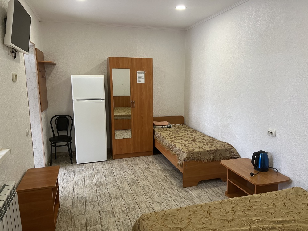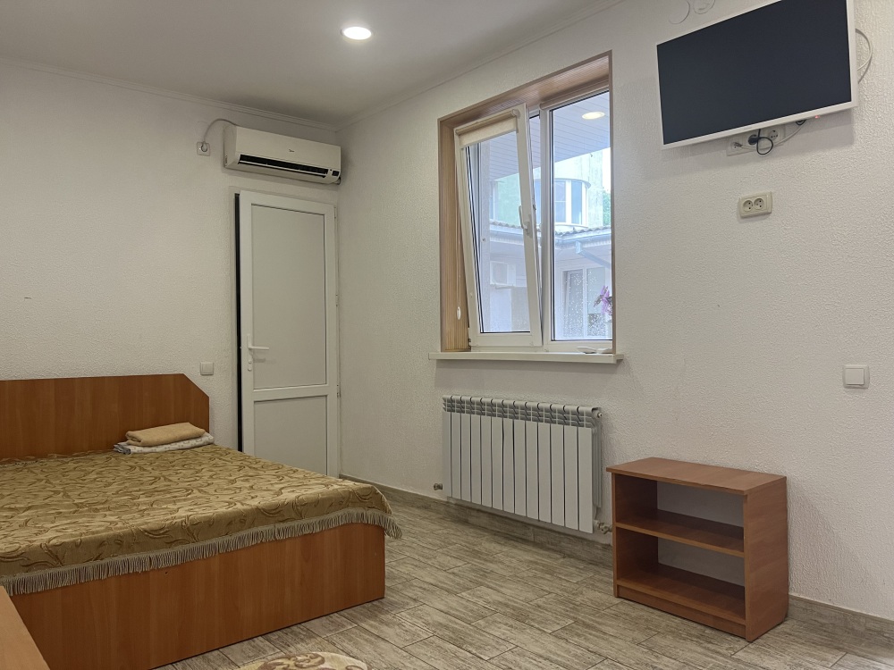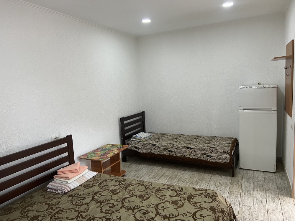 В доме все комнаты оборудованы: телевизором, холодильником, кондиционером, санузлом с холодной и горячей водой круглосуточно. В санузле – душевая кабинка, умывальник, зеркало, туалет. Также в комнате имеется - шкаф для одежды и вещей, полочка для обуви, вешалка, зеркало, прикроватные тумбочки. Комнаты рассчитаны на 2-5 человек. В комнатах чисто и уютно. Смена постельного белья, полотенец и уборка комнаты - бесплатно. Каждая комната с отдельным входом. Возле комнаты - кухня, на которой есть: плита, посуда, обеденный стол, стиральная машинка, гладильная доска и утюг.