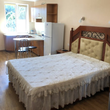 В номере есть: холодильник, кондиционер, спутниковое ТВ, Wi-Fi, вода постоянно холодная и горячая, стиральная машинка в общем пользовании. На первом этаже небольшой дворик со столом и стульями, на втором этаже балкончик со столом и стульями.