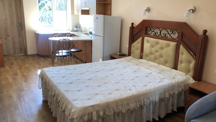 Каждый номер со своей кухней (эл.плита, раковина, электрочайник, микроволновая печь, весь кухонный инвентарь).