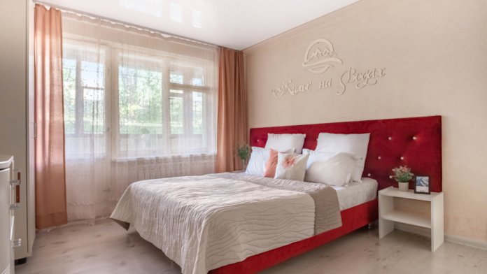 Спальня просторная, удобная кровать и диван вмещают, до четырёх гостей.