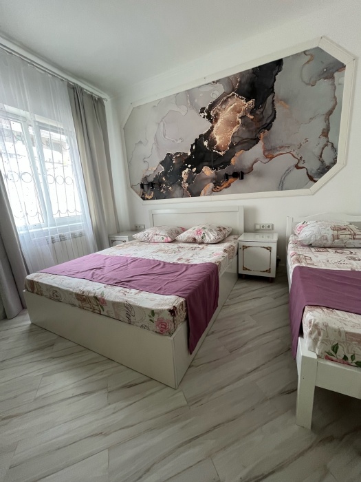 Евпатория ул Пушкина55в Дом на 4-6 человек-две комнаты с\у кухня посуда беседка качели интернет двухспальняя кровать и 2 односпальные диван кресло-кровать телевизор интернет холодильник кондиционер беседка мангал утюг чистое постельное белье стиральная машина автостоянка двор весь в цветах фото в фотоальбоме у меня на страничке встреча с вокзала Евпатории бесплатно возможна встреча с Симферополя и аэровокзала за оплату рядом столовые кафе парк Фрунзе детские атракцеоны300 метров до аквопарка но у нас тихоWi-Fi есть