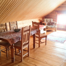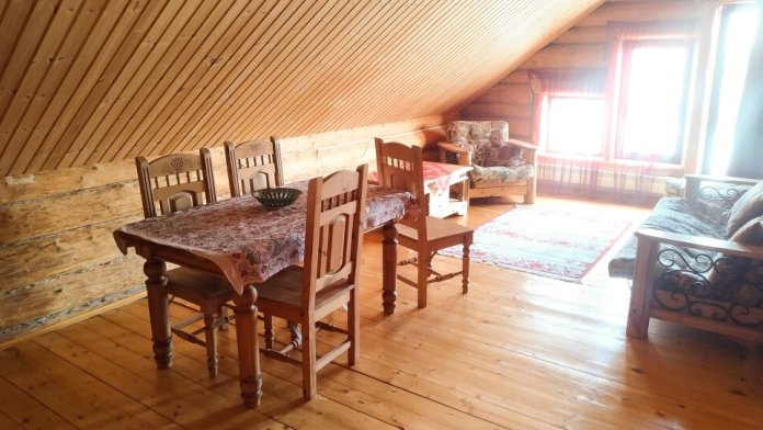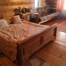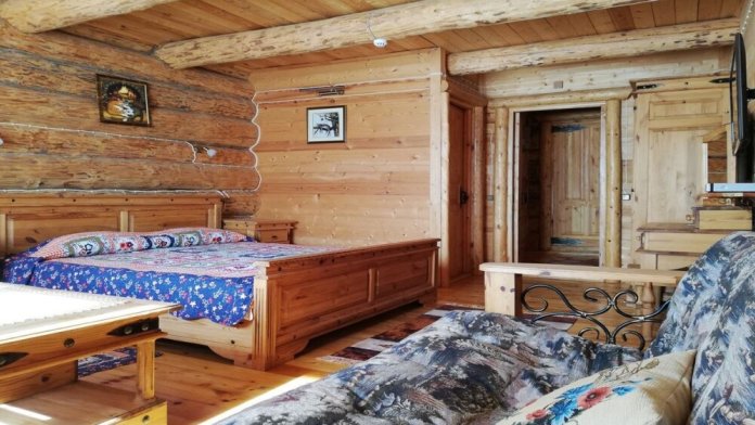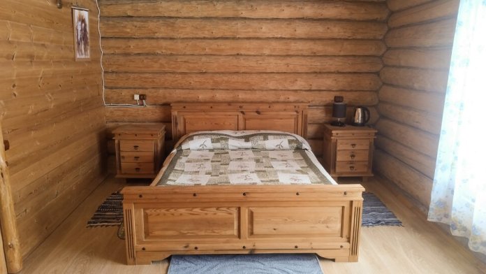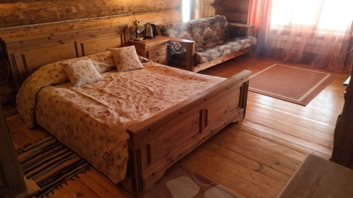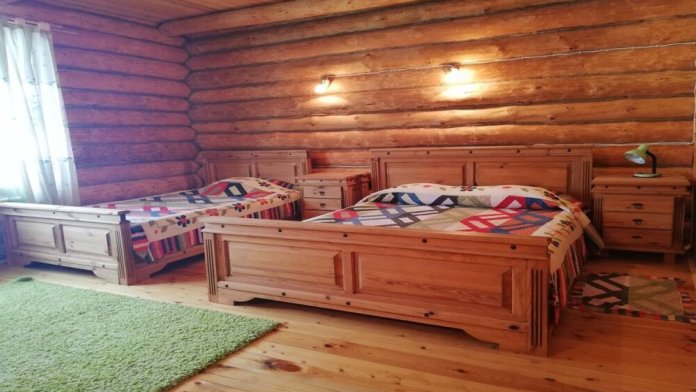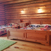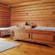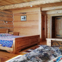 Коттедж состоит из трех независимых однокомнатный номеров, каждый с видом на лес. В номере – 1 комната, расположены двуспальная и односпальная кровати. В каждом номере санузел с душевой кабиной.