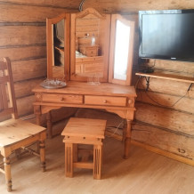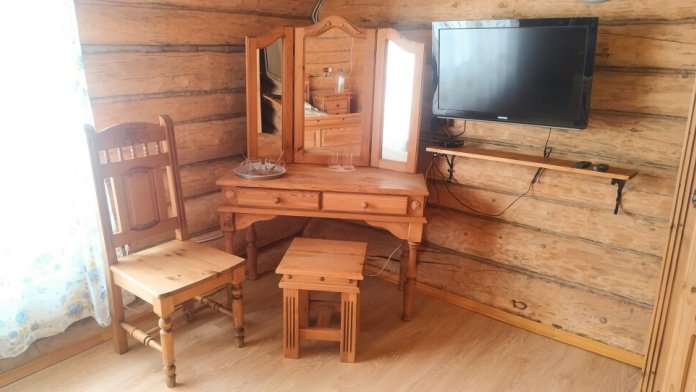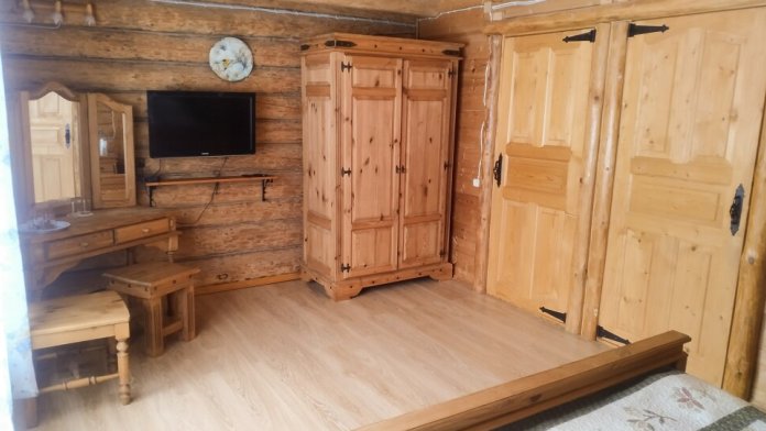 Дом состоит из двух номеров (входы с улицы). Каждый номер - комната с двуспальной кроватью, шкафом для одежды, туалетный столик. В каждом номере санузел с душевой кабиной.