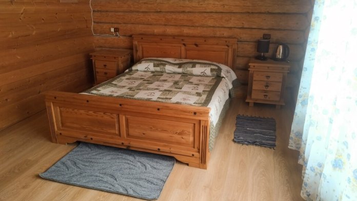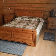1 этаж: большая спальня (36 м.кв.) с двуспальной кроватью, большая ванная комната, гостиная с раскладным диваном.