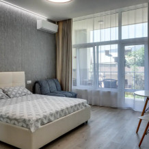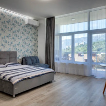 Мы позаботились о Вашем комфортном проживание, поэтому наши номера оборудованы всем необходимым: двухспальная кровать с ортопедическим матрасом, для дополнительного места есть очень удобный и мягкий раскладной диван, TV с кабельным подключением, Wi-Fi, кондиционер, стиральная машинка. Каждая ванная комната оборудована душевыми кабинами, гигиеническим душем, феном, удобными зеркалами с подсветкой. Обеденная зона, мини-кухня со всем необходимым. Наши балконы не оставят Вас равнодушными: свежий воздух, невероятный открывающий вид на море и горы, пение птиц.