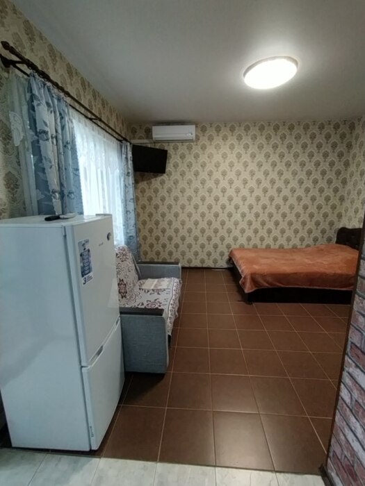 В доме абсолютно все удобства, двуспальная кровать и небольшой диван, посуда, стиральная машина, санузел, кухонная зона для приготовления пищи, холодильник, кондиционер, чайник. Во дворе столик со стульями для отдыха. Мангал по запросу. Удобный вариант для спокойного размещения в самом центре Евпатории.
