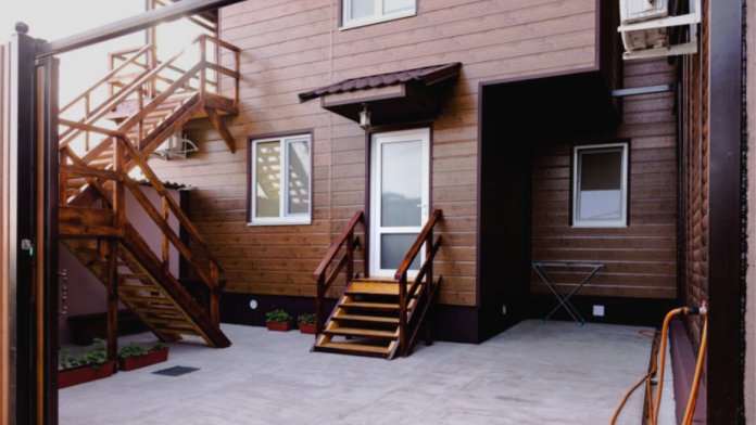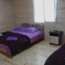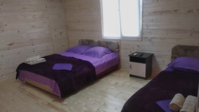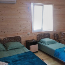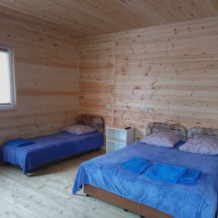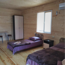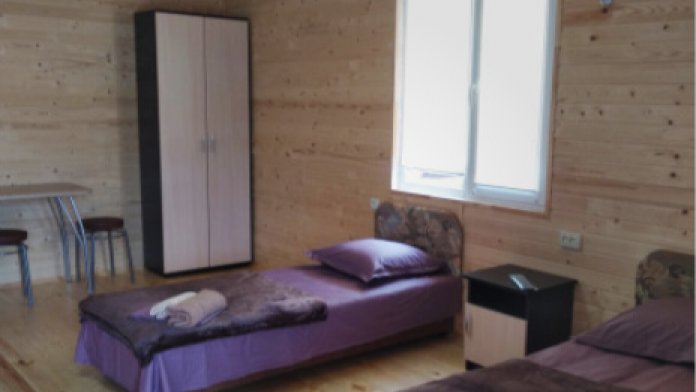 Номера расположены в частном секторе - деревянные домики с экологически чистого материала сосна, с террасами. Второй этаж - две комнаты студии, 4-местные. Имеется семейный номер на 6 человек, а также 3-местные номера со всеми удобствами.