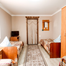 2-х местный номер со всеми удобствами с доп.местом, рядом с номером столик для приема пищи, отдельная мини кухня со всем необходимым оборудованием.