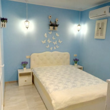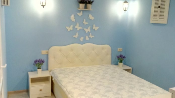 Домик только для двух человек, не большой, но комфортный. В нем есть,терраса,личный туалет, душ, кухня со всем необходимым, телевизор, вай-фай,кондиционер,фен,утюг,2х спальная кровать,шкаф,комод.