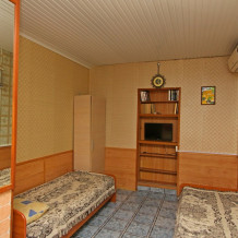 К услугам гостей небольшой благоустроенный дворик, в комнате отдельный санузел (туалет, душевая кабина) и кухонный блок (электрическая плита, посуда, холодильник). Вход отдельно от хозяев.