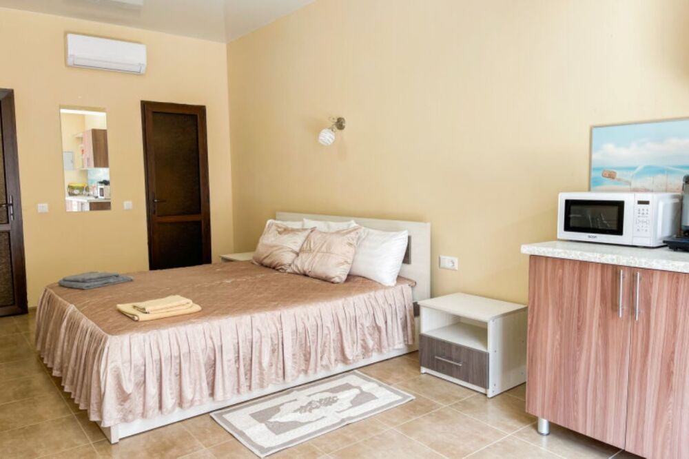 Имеется полностью оборудованная, благоустроенная кухня для самостоятельного приготовления пищи (холодильники, посуда, плита). В шаговой доступности от нас располагаются: центр села детской площадкой, , кафе, магазины. Во всех номерах независимо от категории есть телевизор, кровати, кондиционер, гардеробная, зеркало, стол, Wi – Fi. Говорить о преимуществах отдыха у нас можно долго, лучше приезжайте и наслаждайтесь отдыхом у моря!
