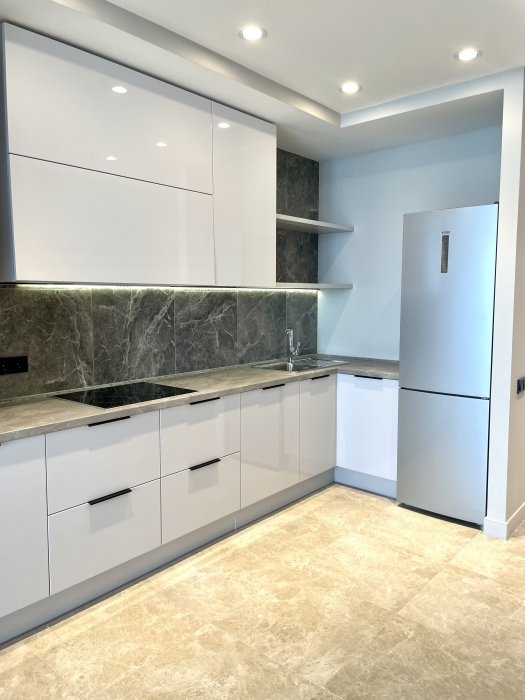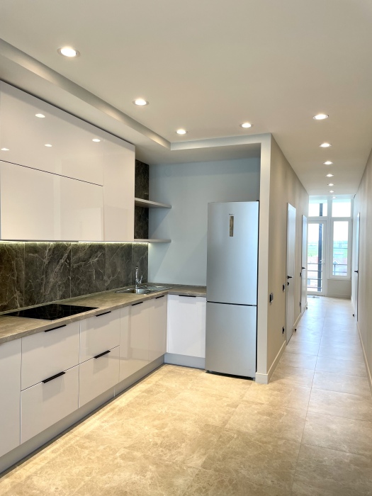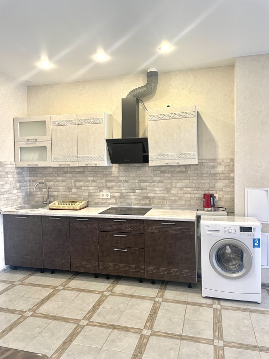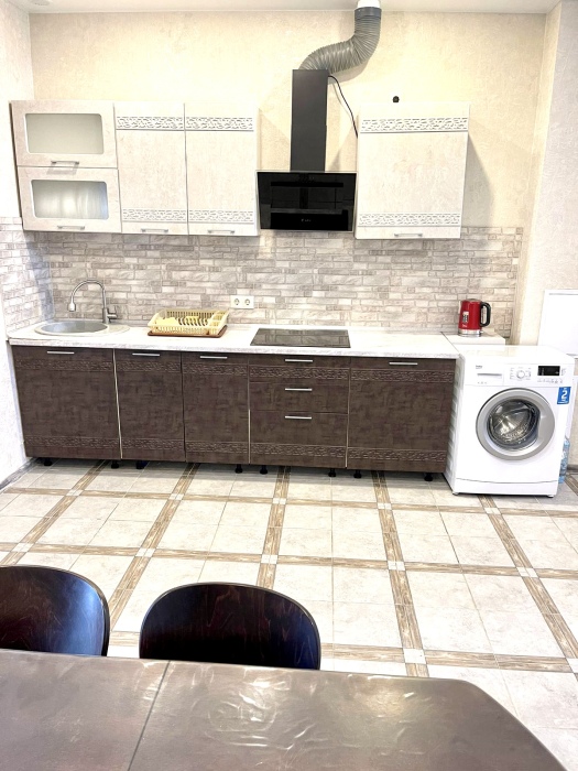 Кухня оборудована всем необходимым: холодильник,электрочайник,индукционная плита стиральная машинка и посудомоечная машинка ,вся необходимая посуда .