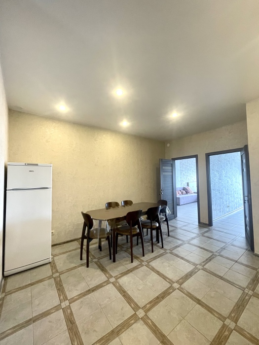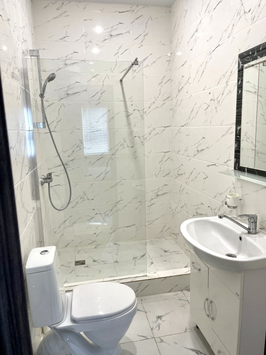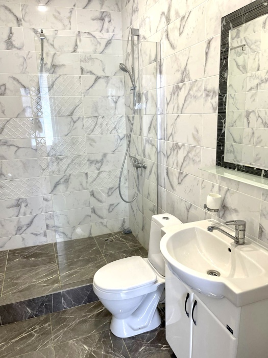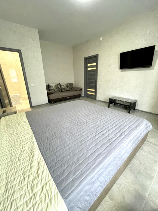 Планировка -3 раздельные комнаты в каждой комнате душ и туалет ,просторная гостиная с кухней ,телевизором с плоским экраном и спутниковыми каналами.