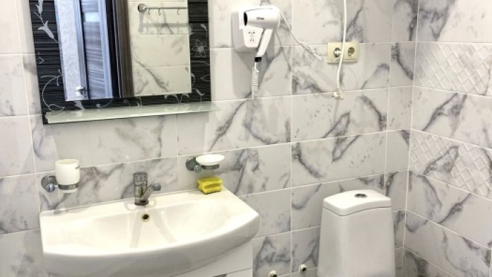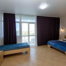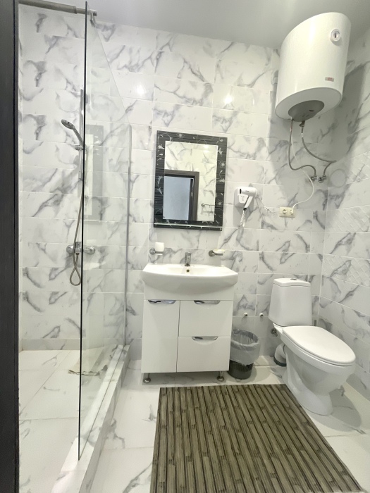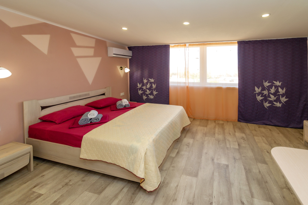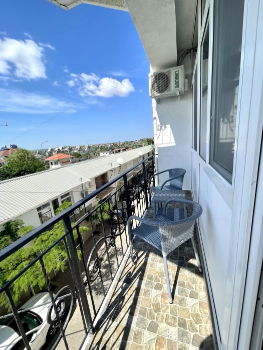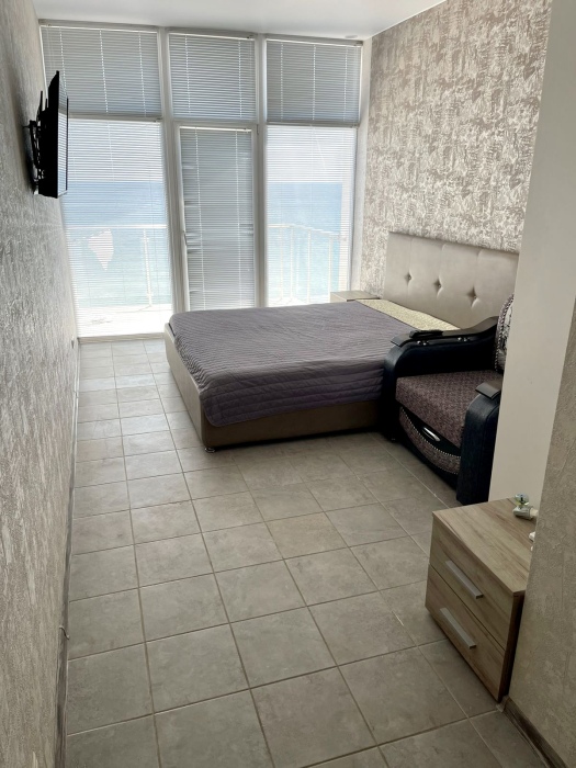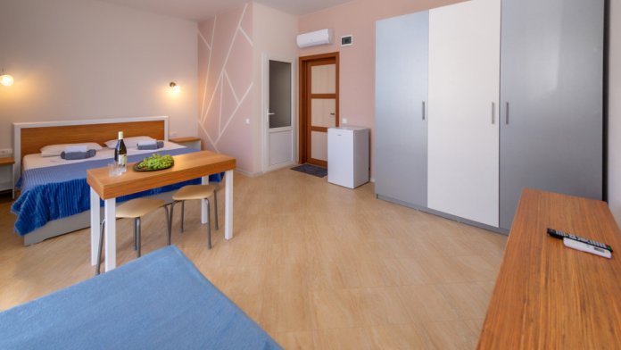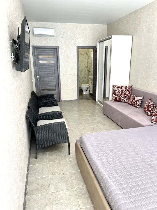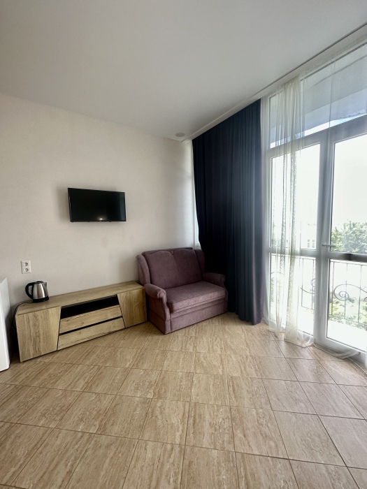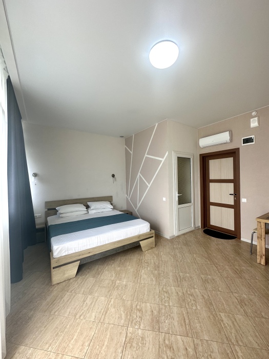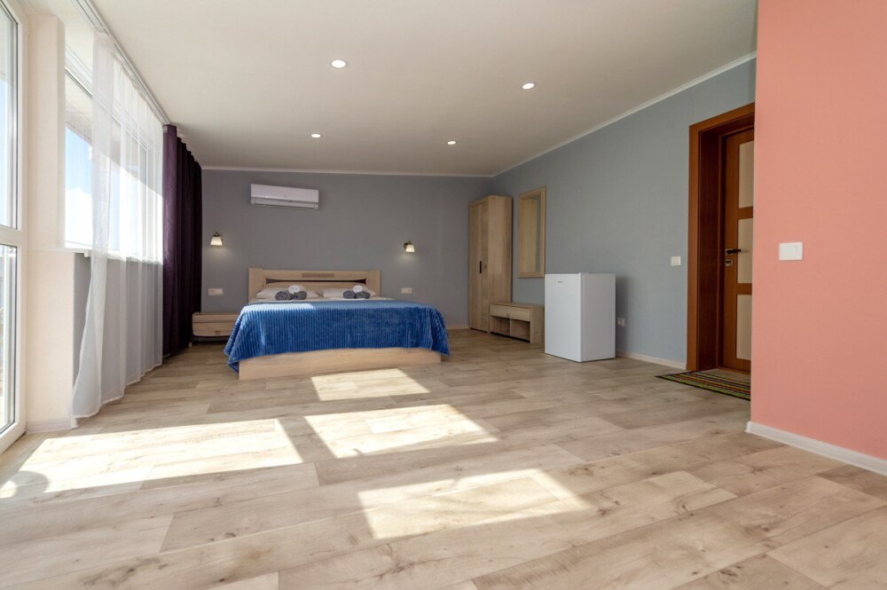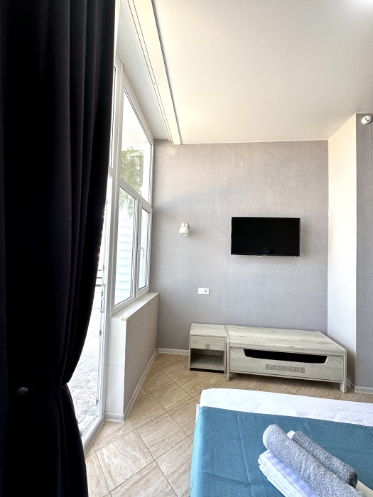Элегантные номера оснащены кондиционером, телевизором с плоским экраном и спутниковыми каналами, холодильником,электрочайник,посуда(тарелки,ложки,вилки,стаканы,чашки).В каждом номере есть балкон .Номера с видом на море оснащены шезлонгами, также имеется на балконе стол и стулья для отдыха. В номерах удобная современная мебель ,ортопедические матрасы .Предоставляются роскошные постельные принадлежности,комплект полотенец,косметические принадлежности (мыло,шампунь ,Гель). В распоряжении гостей собственный пляж с шезлонгами ,также игровая зона для детей.