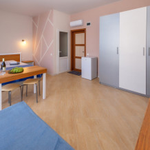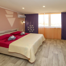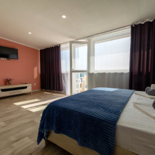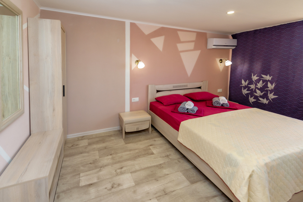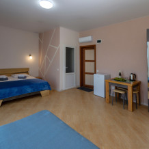 Элегантные номера оснащены кондиционером, телевизором с плоским экраном и спутниковыми каналами, холодильником .В номере есть балкон .Номер с видом на море оснащен шезлонгами, также имеется на балконе стол и стулья для отдыха. Номер имеет две спальни ,в просторной комнате двуспальная кровать ,в другой комнате ,две односпальные кровати .Предоставляются роскошные постельные принадлежности. В распоряжении гостей собственный пляж с шезлонгами ,также имеется оброрудованная игровая зона для детей.В отеле 2 4-местных номера расположены на 2 и 3 этажах