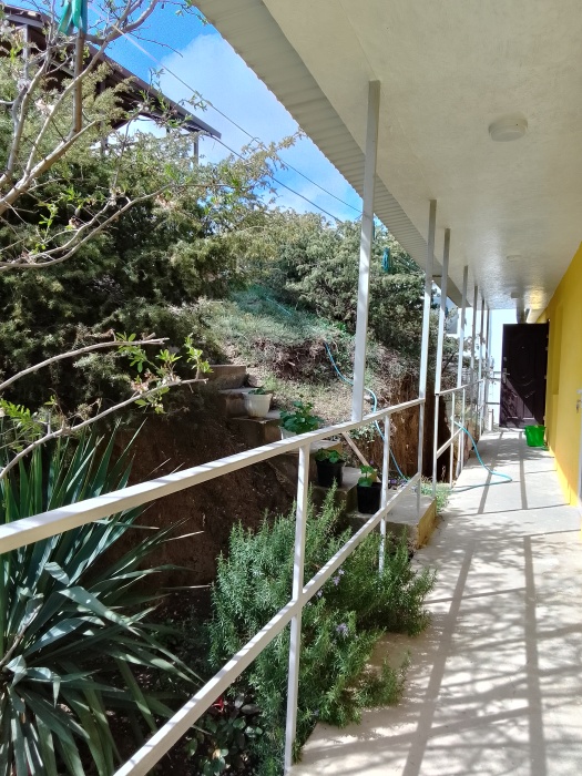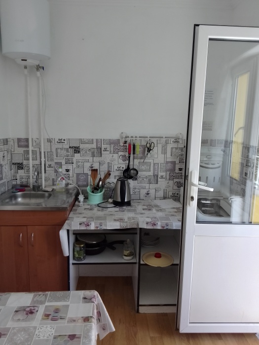 В каждом номере есть кухня, которая оборудована всем необходимым для самостоятельного приготовления: холодильник, микроволновка, кондиционер, телевизор, спутниковое ТВ. Есть беседка на свежем воздухе, мангал. Прекрасный вид на Генуэзскую крепость.
