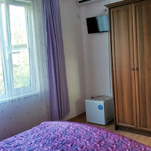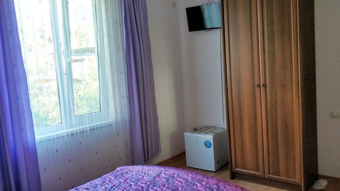 В гостинице 2 номера стандарт с удобствами в номере. Один на втором этаже, второй на третьем этаже. На третьем этаже имеется общий холл, где можно отдохнуть в жару или в непогоду. Во всех номерах имеются двуспальная кровать, шкаф, трюмо, тумбочки, холодильник, телевизор, кондиционер, фен, полотенца, одноразовые тапочки, санузел (душ, туалет). На каждом этаже имеется общий большой балкон, там можно приятно провести время, наслаждаясь замечательной природой Абхазии.