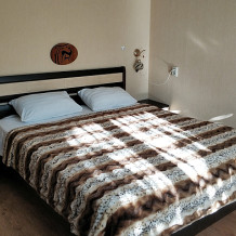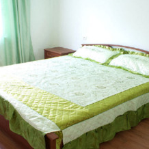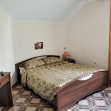 В гостинице всего два номера эконом с удобствами на этаже с дополнительным местом. Все на первом этаже. На эти два номера на этаже санузел. Во всех номерах имеются двуспальная кровать, шкаф, трюмо, тумбочки, холодильник, телевизор, кондиционер, фен, полотенца, одноразовые тапочки.