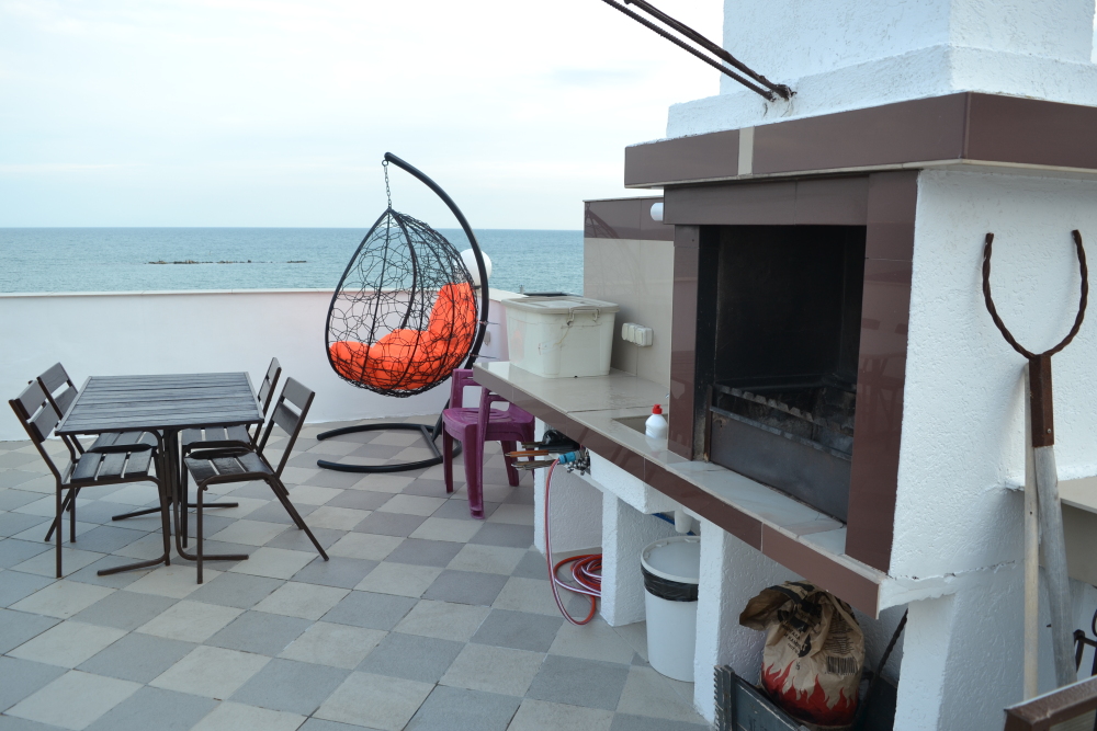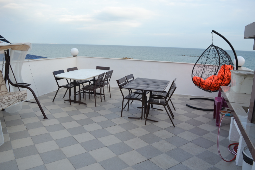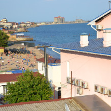На пляже есть детская площадка и атракционы для маленьких детей, крытые навесы, шезлонги, массаж, кафе. От нас начинается полоса пляжей в 5 км.
