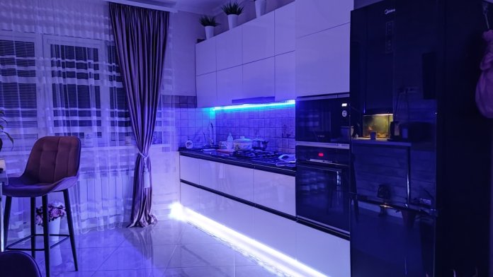 В каждой комнате имеются японские кондиционеры, большие плазменные телевизоры Самсунг нового поколения 4к 55 диагональ со СМАРТ ТВ, вай-фай. Имеется домашний кинотеатр Sony с акустической системой, стиральная машина 3д Lg с встроенной сушкой. Варочная поверхность, духовой шкаф, холодильник, пароутюг сокодавка, и другая техника фирмы БОШ, вся техника из чёрного стекла, контрастно сочетающаяся с белой глянцевой кухонной мебелью. Имеется система очищения воды Osmos Мягкие пудровые велюровые кресла и шторы на кухне также сочетаются с декоративным камнем и декоративной штукатуркой, на которой пикантно смотряться большие настенные часы. В каждой комнате(на полу, потолке, кухне, тумбах и даже в санузле) имеются ледовские подсветки, всё очень красиво светиться в вечернее время, придавая романтическую обстановку. Гламурность помещению придаёт искусственная и натуральная зелень, представленная большим настенным панно, отдельными экибано и красивыми напольными кашпо. Так же в помещении для релаксации есть аквариум с декоративными рыбками. На окнах везде москитные сетки и жалюзи. Санузел совмещённый, выложен плиткой 120 на 90 мрамор, чёрная сантехника подчёркивает элегантность помещения, имеется тропический и гигиенический душ. Придомовая очень зеленая территория у подножия Медведь-горы с видом на крымские горы, утопающая в зелени кипарисов и олеандров, эстетически оформлена, имеется мангальная зона, где можно насладиться пением птиц вдали от городской суеты, имеется также бесплатная парковка. Наши гости иногда называют её сказочной, так как там присутствуют элементы сказочных персонажей (аисты, совы, олени, мышата, крот, дятел, избушка на курьих ножках бабы Яги). Также имеется просторный балкон с плетёной мебелью, где можно посидеть с чашечкой кофе. В коттедже идеальная чистота, поэтому хотим тоже видеть у себя гостей, любящих и поддерживающих чистоту и порядок