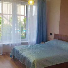 Номерной фонд гостевого дома состоит из 9 1-комнатных 2-местных номеров и 6 2-комнатных семейных номеров. В каждом номере есть туалет, душ, фен, кондиционер, москитная сетка, телевизор, электрочайник, постельное бельё. В двухместных номерах установлена одна двуспальная кровать, в четырехместных одна двуспальная и две односпальные. В стоимость проживания включено предоставление чистых полотенец. Уборка в номерах, смена полотенец и постельного белья осуществляется раз в 5 суток или по требованию.