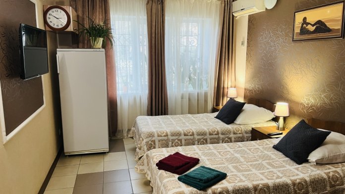Предлагаем 3-х местный номер с двуспальной кроватью и двумя отдельными кроватями. П