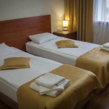 Гостиница «Центр Отель» предлагает Вам уютный отдых в номерах, оснащенных всем необходимым (кондиционер, телевизор, фен, холодильник, чайник, Wi-Fi и внутренний телефон). Мягкие кровати с ортопедическими матрасами дарят отличный сон, вкусные завтраки, включенные в стоимость проживания, дают заряд бодрости на весь день. Можно воспользоваться услугами прачечной, трансфера из аэропорта, заказа такси и организации экскурсий. Удобное расположение позволит Вам приехать прямо ко входу, а городской транспорт поможет добраться до любой точки города без пересадки.