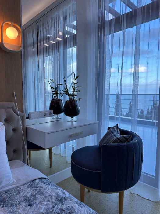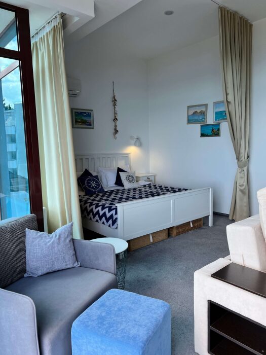 Свежий, воздушный, стильный. В нем будто плывешь на роскошной яхте, а из окна — бескрайний горизонт черного моря.