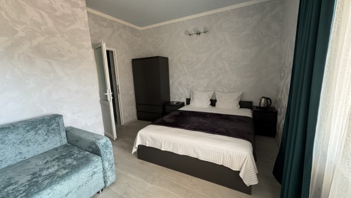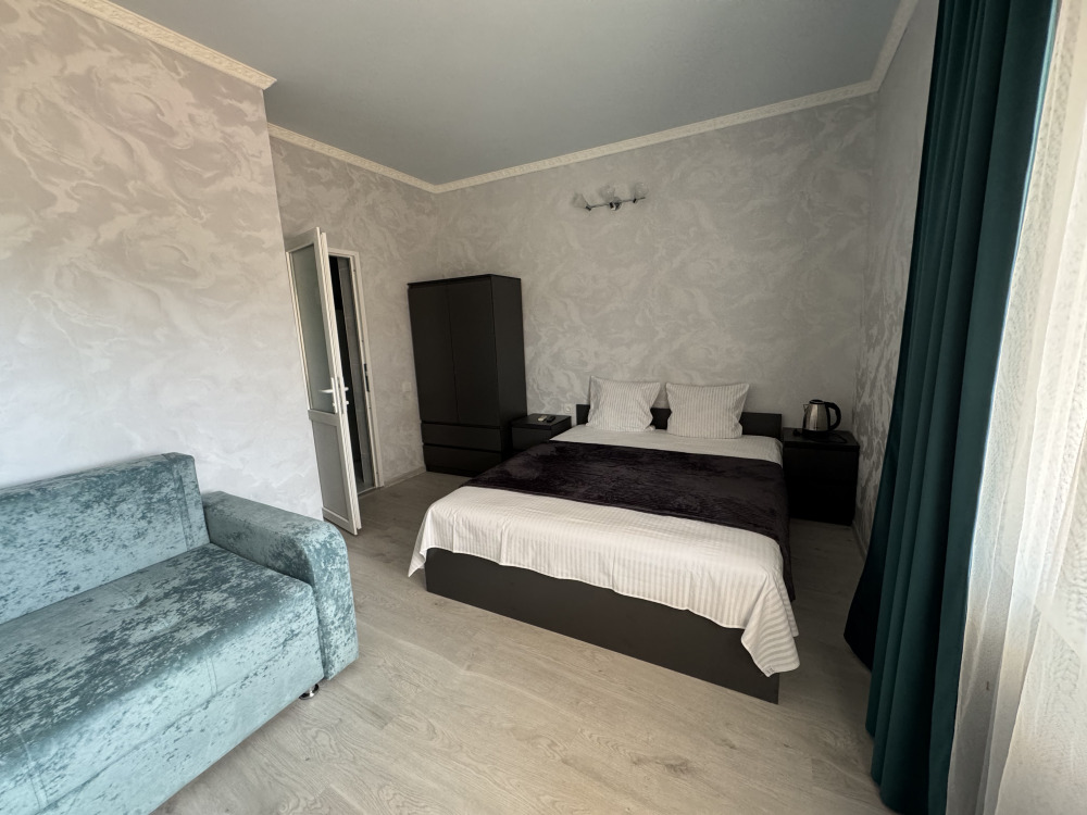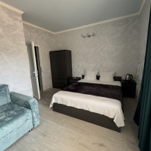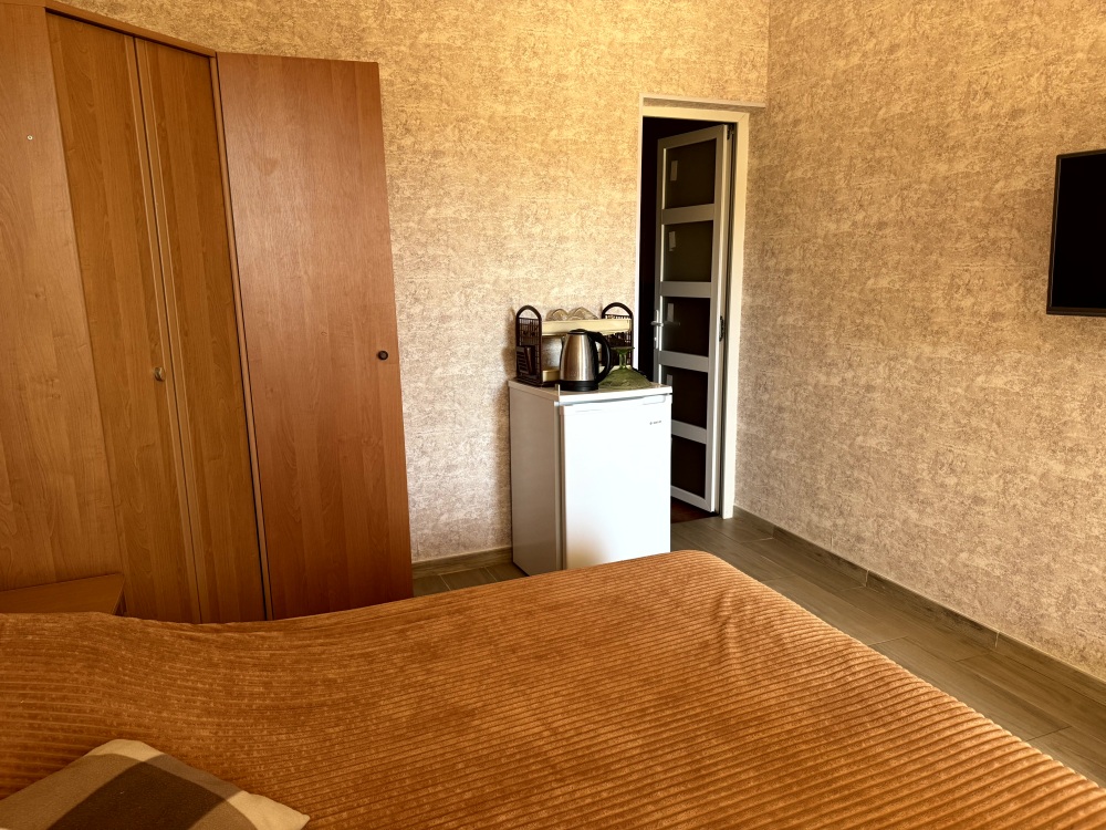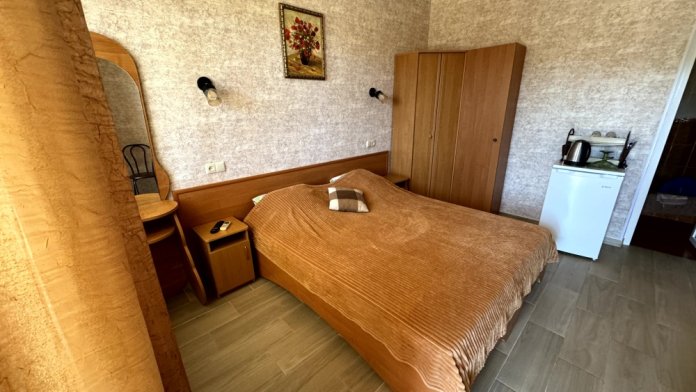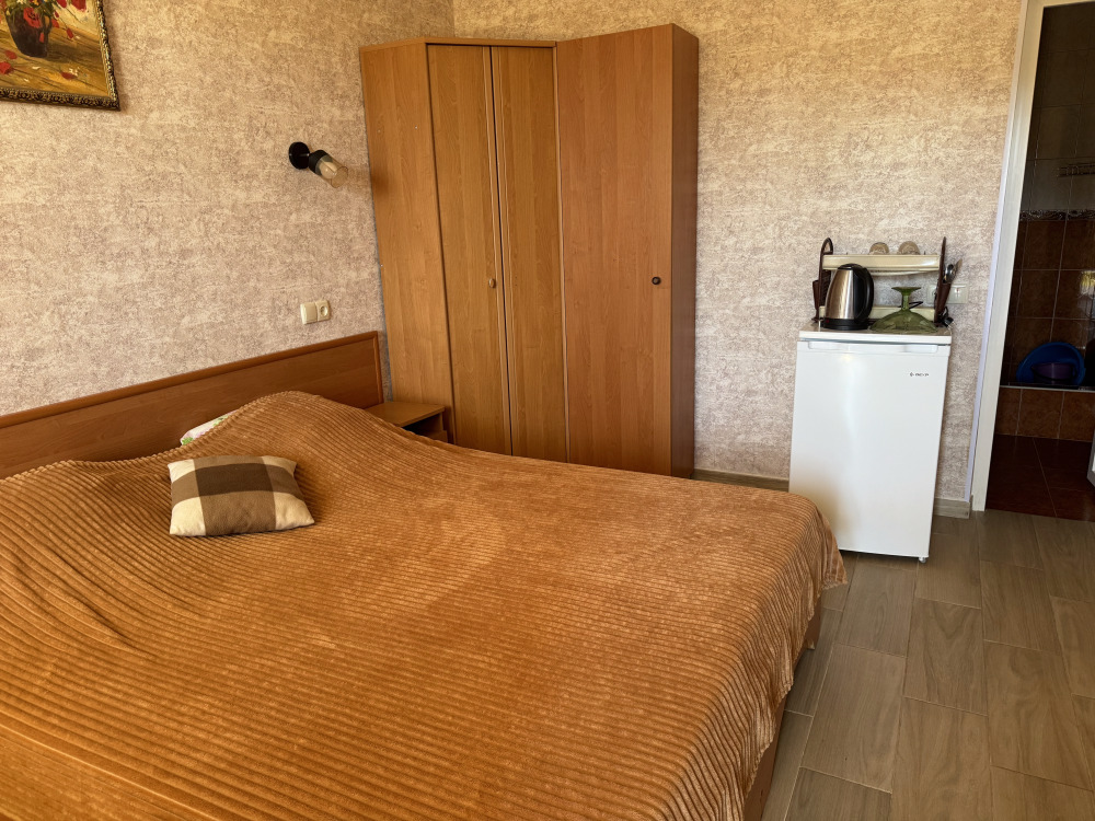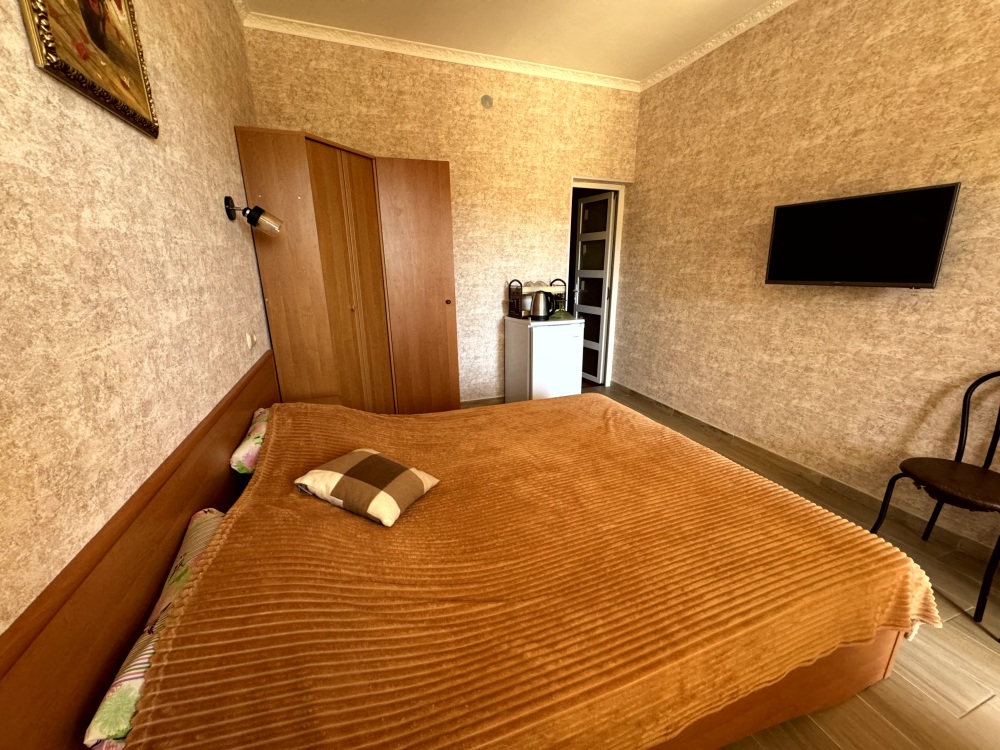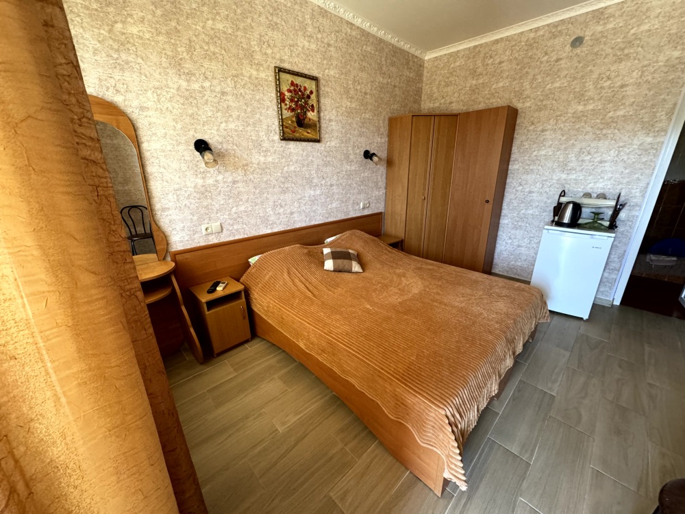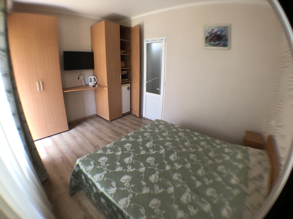 Мы предлагаем своим гостям 12 комфортных и уютных однокомнатных и двухкомнатных номера, в каждом из которых удобная и современная мебель, душ с круглосуточной подачей горячей и холодной воды, туалет, кондиционер, плазменный телевизор с множеством программ, сейф, чайник, посуда. На балконах каждого номера Вы, удобно расположившись за столиками для отдыха с бокалом душистого крымского вина, можете наблюдать восходящее над морским горизонтом или уходящее за горные вершины ласковое южное солнце.