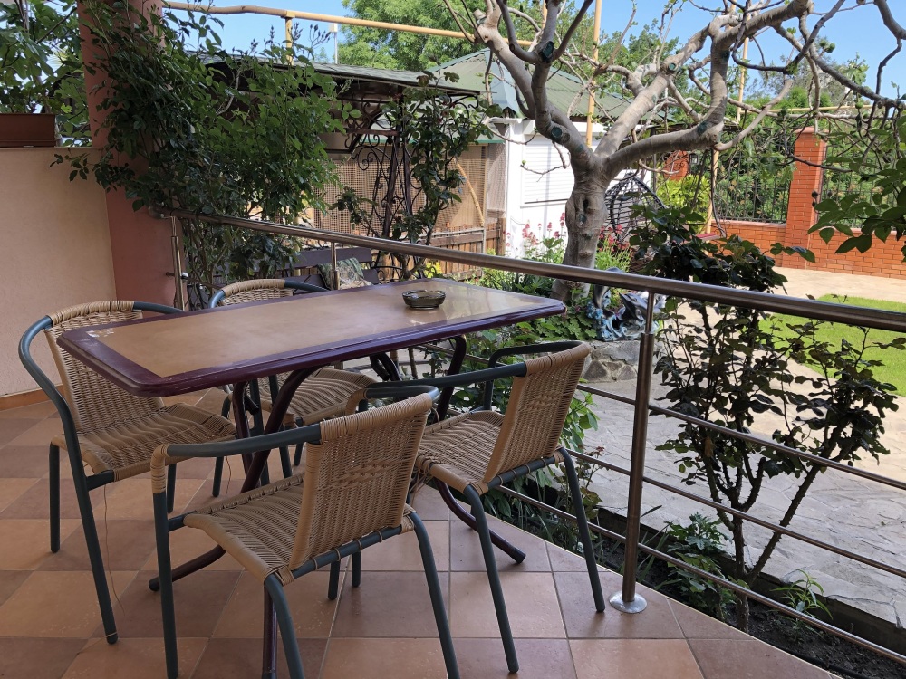 Во внутреннем дворике нашего гостевого дома множество зелени, экзотических растений и цветов, с любовью выращенных руками заботливой хозяйки. Детвору очень позабавят фигурки сказочных персонажей и животных, неожиданно возникающих среди растений, а на уютных качелях и шезлонгах с удовольствием отдохнут и взрослые.